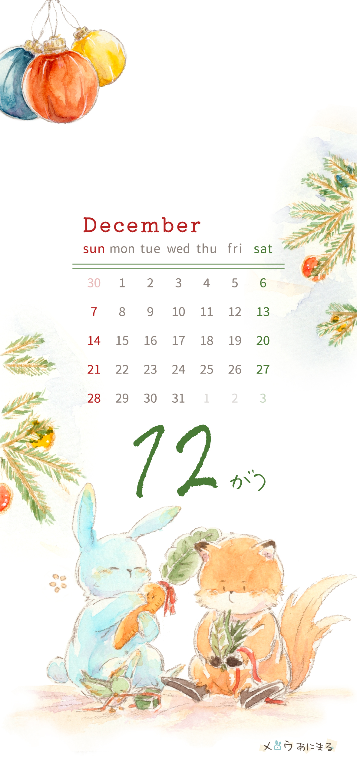 月毎のスマホ用カレンダーの