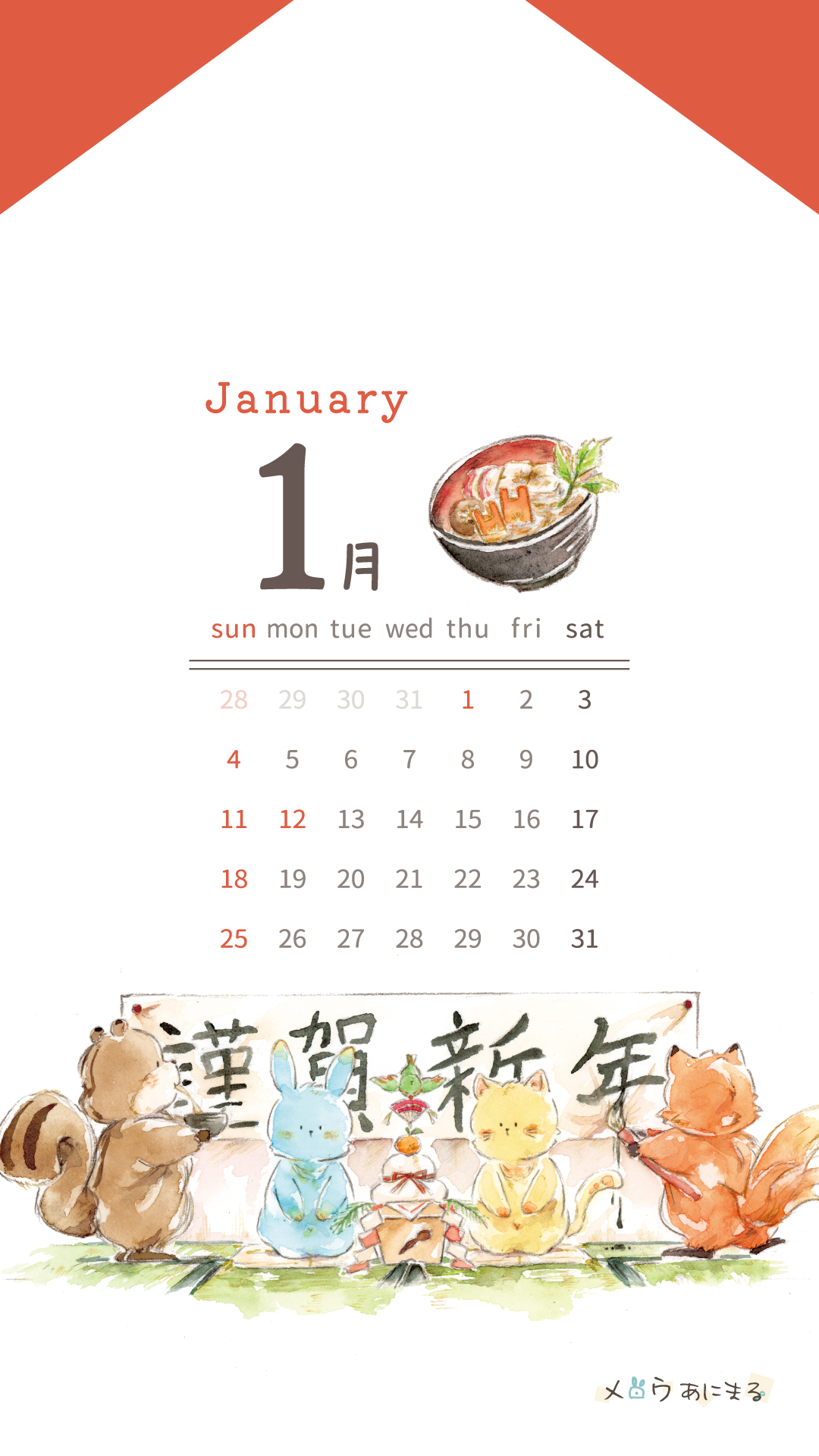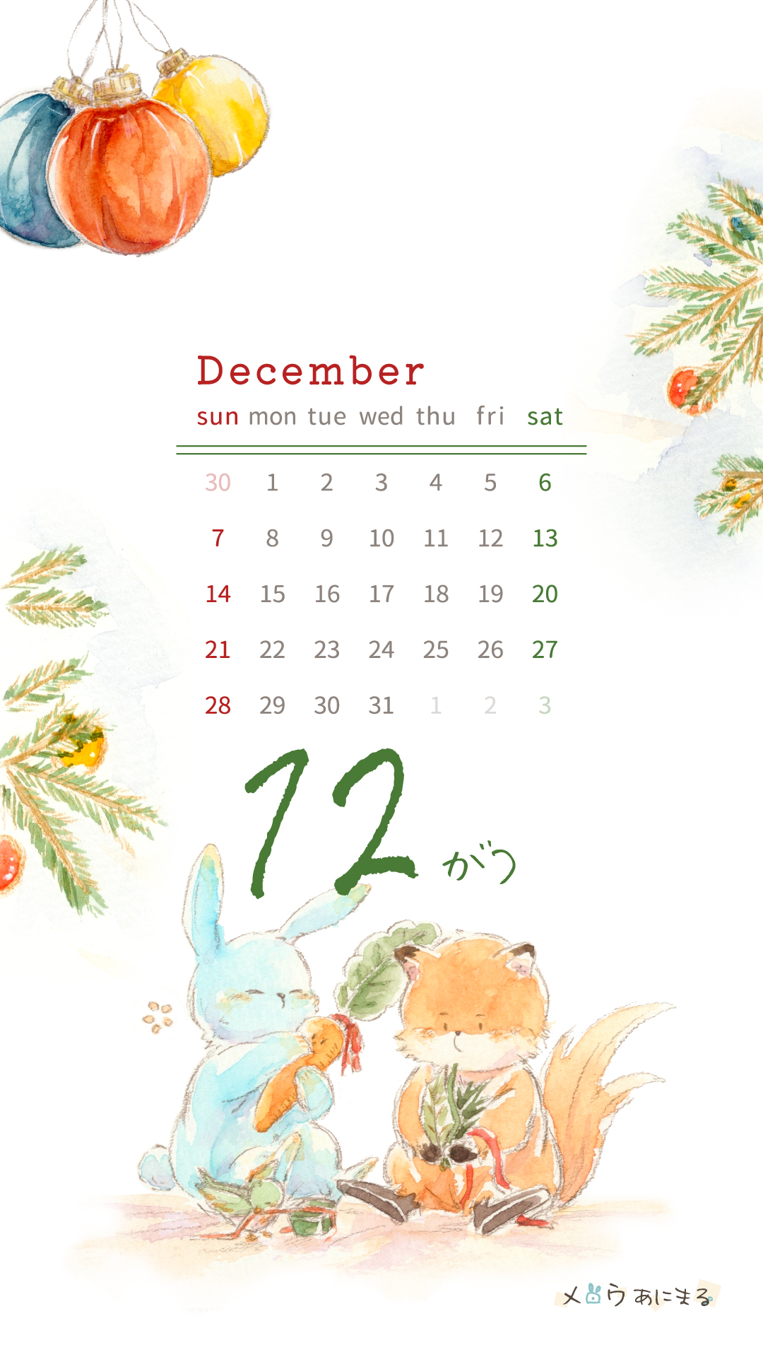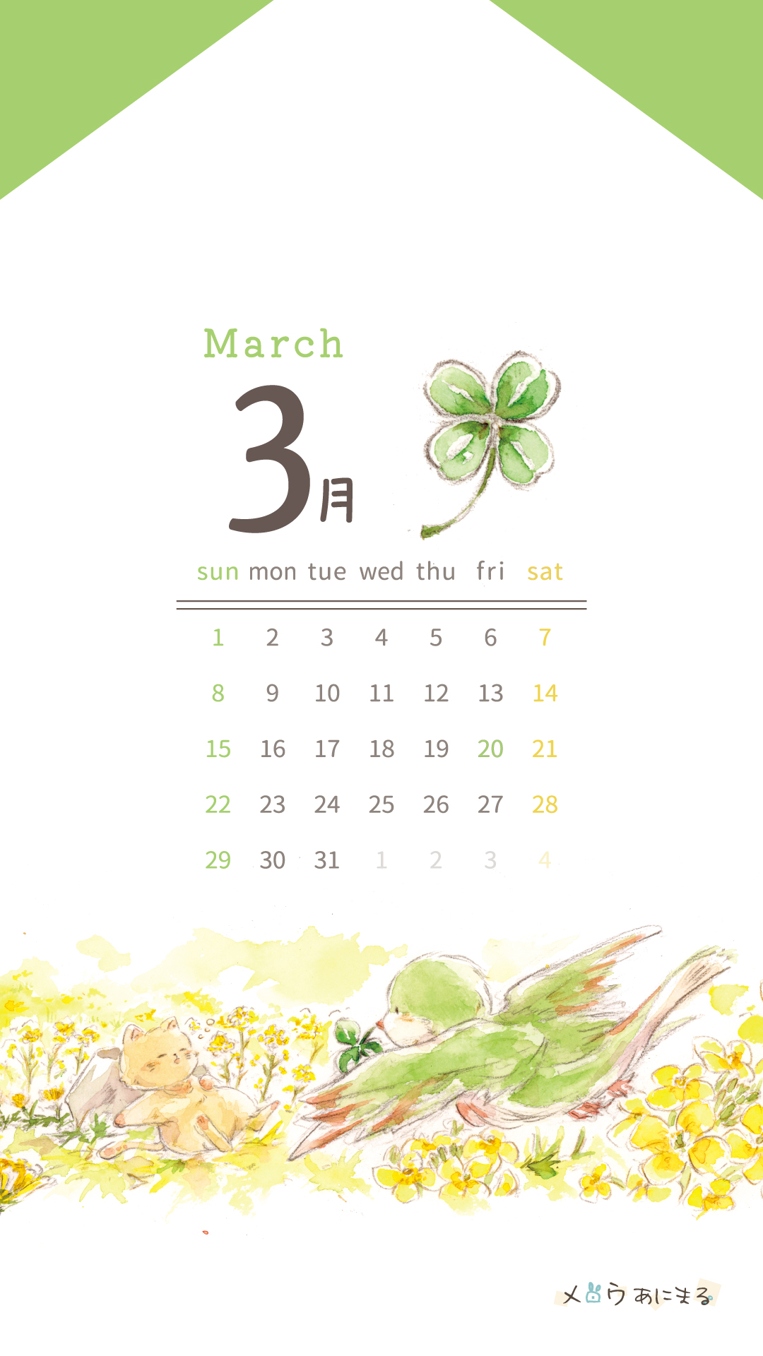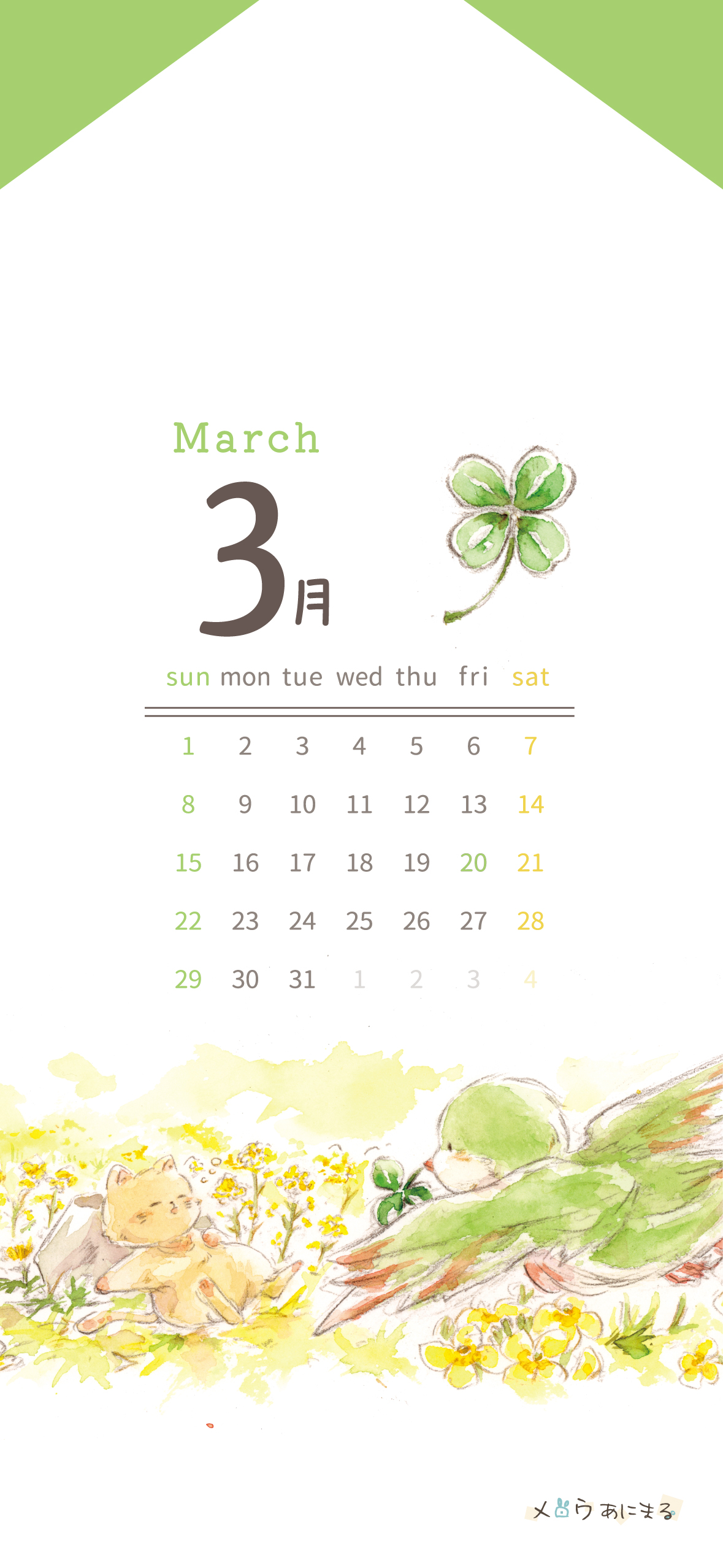 月毎のスマホ用カレンダーの
